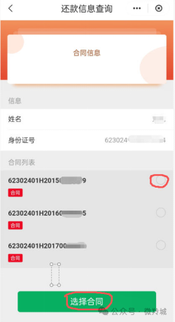 合同信息页面,点击【选择合同】,查看当期该合同需要还的到期本金。
