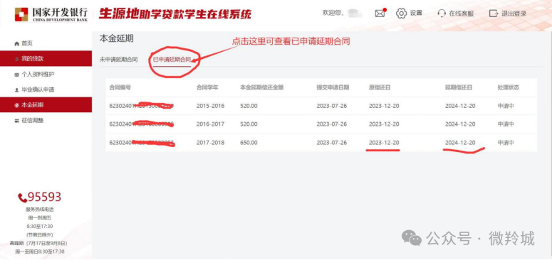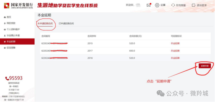 3.申请延期方式:借款学生自主登录国家开发银行助学贷款学生在线系统(https://sls.cdb.com.cn)或手机端下载“国家助学贷款”APP提交本金延期偿还申请,申请提交后,无需审批,即日生效,不可撤销。
