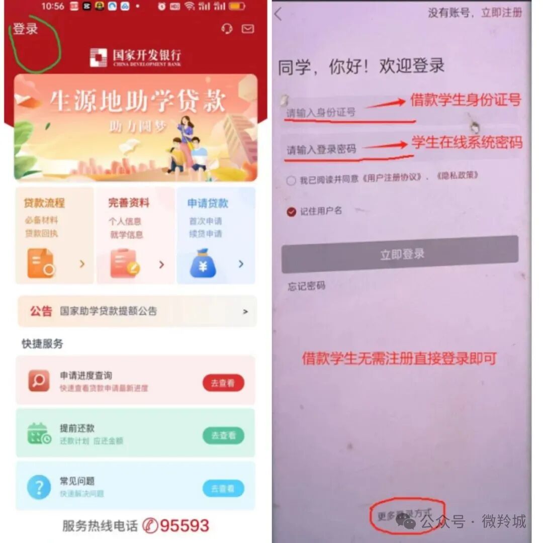 1.打开“国家助学贷款”APP,点击“登录”进入登录页面,借款学生无需注册可用身份证号和学生在线系统密码直接登录。也可选项更多登录方式。
