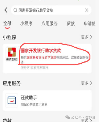 打开云闪付APP,搜索“国家开发银行助学贷款”,进入小程序。