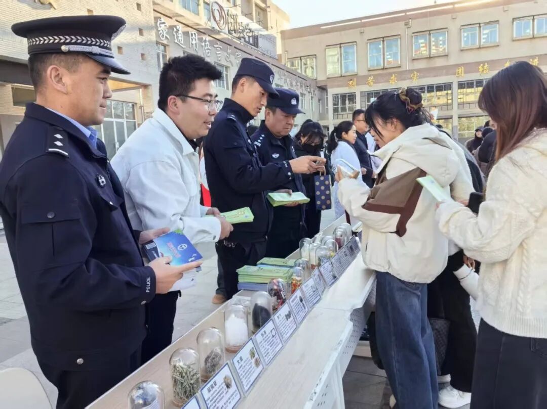活动现场,宣传人员通过摆放和讲解多种形态各异的新型毒品仿真模型,吸引了众多师生驻足观看。通过直观的模型展示、真实案例讲解以及有趣的互动问答,宣传人员深入浅出地剖析了滥用麻精药品和成瘾性物质对个人、家庭及社会造成的严重危害,系统普及了禁毒知识与预防艾滋病的关联要点。民警还现场向学生们传授了识别毒品诱惑、拒绝毒品侵害的实用技巧,反复强调了自觉远离“黄、赌、毒”等不良恶习对健康成长的重要性,切实帮助师生们提升了明辨是非和自我保护的能力。
