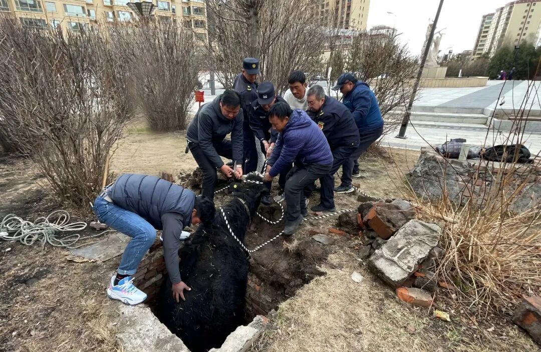 4月9日,城北派出所接到群众报警称:“我家牦牛掉到深坑被困,希望派出所帮忙救助”。群众利益无小事,值班民警接到报警求助后,立即前往事发地点。