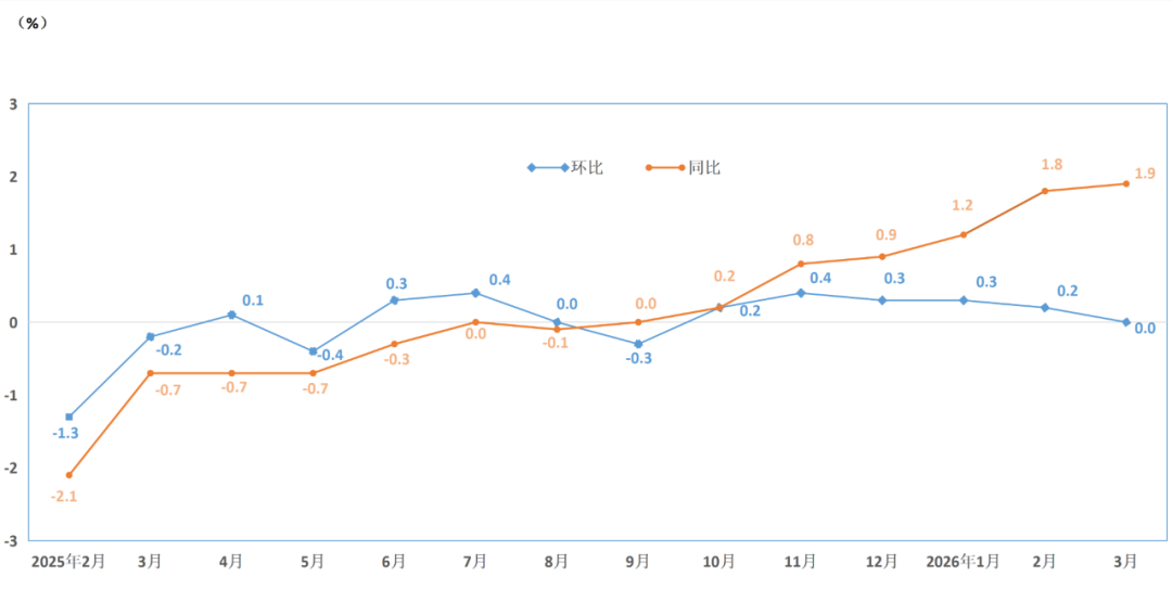 2026年3月份,甘南居民消费价格同比上涨1.9%。其中,食品价格上涨1.8%,非食品价格上涨1.9%;消费品价格上涨2.4%,服务价格上涨1.0%。 3月份,甘南居民消费价格环比持平。其中,食品价格下降1.5%,非食品价格上涨0.5%;消费品价格持平,服务价格下降0.1%。 甘南居民消费价格涨跌幅
