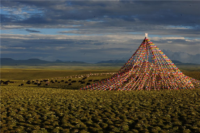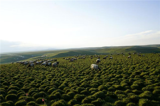一望无际的草原上有排列整齐、大小均匀凸起的小草包,正是青藏高原独有的高山草甸型草地,冻土深度达到150厘米。这片草原是沼泽化草地,最早这里是一片沼泽,由于地势低平排水不畅,久而久之就形成了“疙瘩草原”。