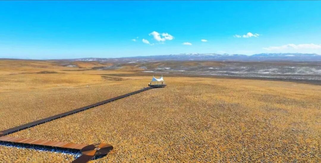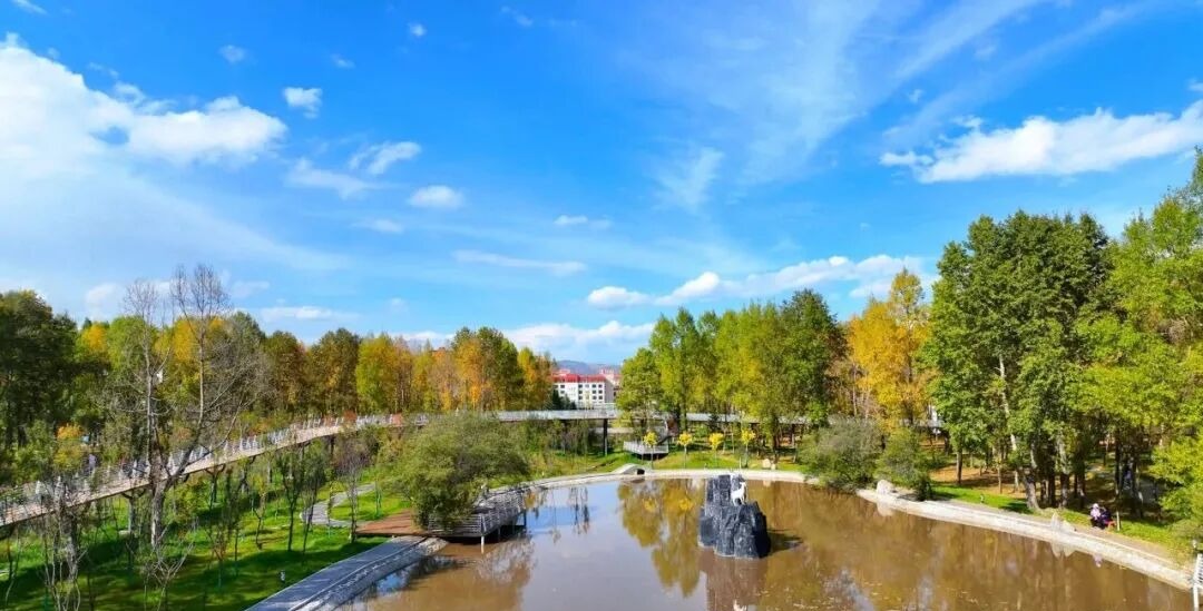 不仅草原,羚城的森林与人文景观也在秋天焕发出别样的韵味。羚城公园,杉树与杨树渐渐染上金黄色,与亭台、拱桥相映成趣,勾勒出一幅质朴而和谐的画面。二百余年的米拉日巴佛阁,秋晨的阳光为其披上庄严而温暖的外衣;美仁草原上的经幡隧道是秋日一抹流动的彩色,风起时幡动如舞,传递着吉祥与祝福。这座城市完美融合了草原的辽阔与城市的宜居,被誉为“草原中的城市,城市中的草原”。