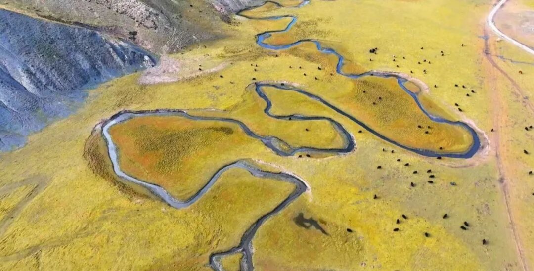 高原的晨光轻柔地洒落在当周山峦,为“青藏之窗·雪域羚城”镀上了一层温暖的金色。美仁草原上,白霜渐融,宛如散落的珍珠,远处牧人悠扬的呼唤唤醒了宁静的草原。这片位于甘南藏族自治州的高山草甸草原,在深秋褪去了夏日的喧嚣,显得更加辽阔而沉静。草原上连绵的圆润草丘与蘑菇头般的草垛错落有致,勾勒出独特而柔和的地貌。夏花已转为满目金红,秋风掠过,草叶轻响,仿佛大自然正低语着一首秋日的诗。