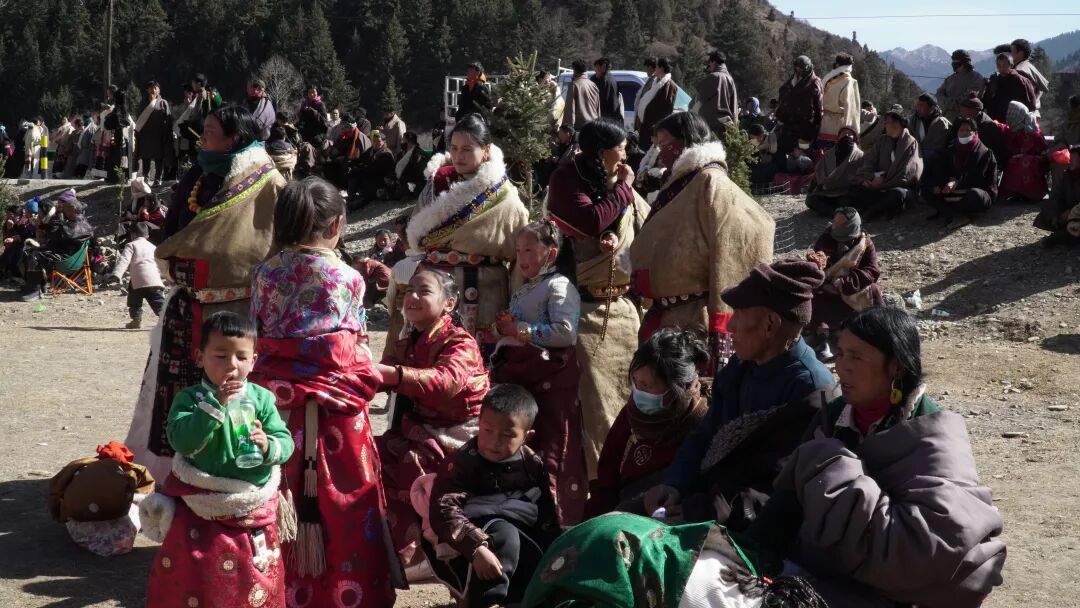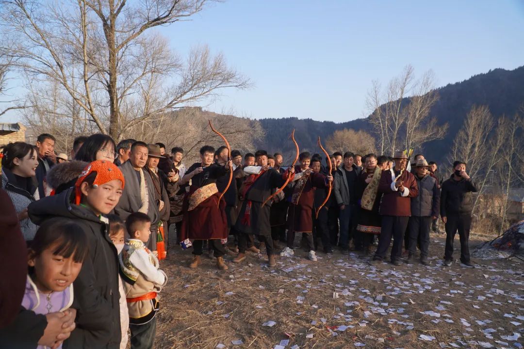 聚集在村子大场的白塔前煨桑、放飞隆达