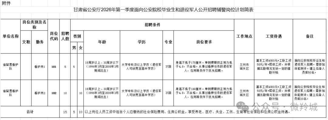 甘肃省公安厅2026年第一季度面向公安院校毕业生和退役军人公开招聘警务辅助人员公告 |
