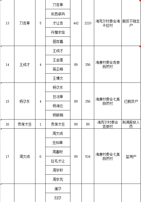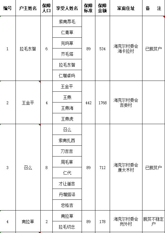 海克尔村2026年2月份农村最低生活保障资金发放花名册