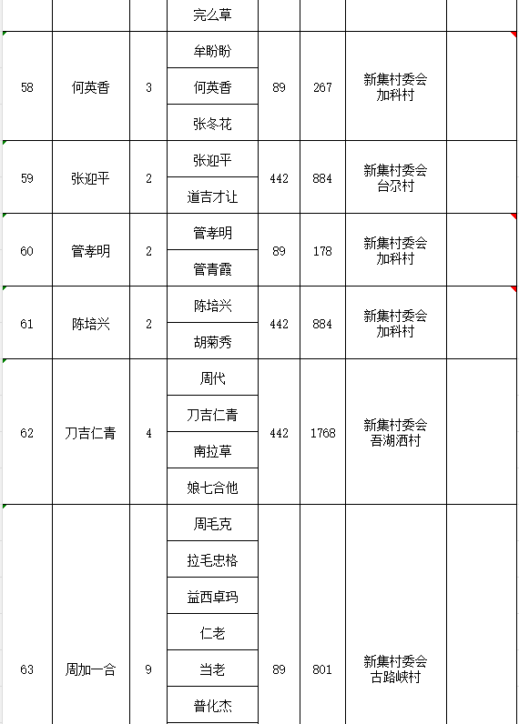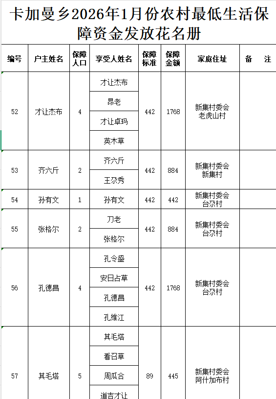 新集村2026年1月份农村最低生活保障资金发放花名册