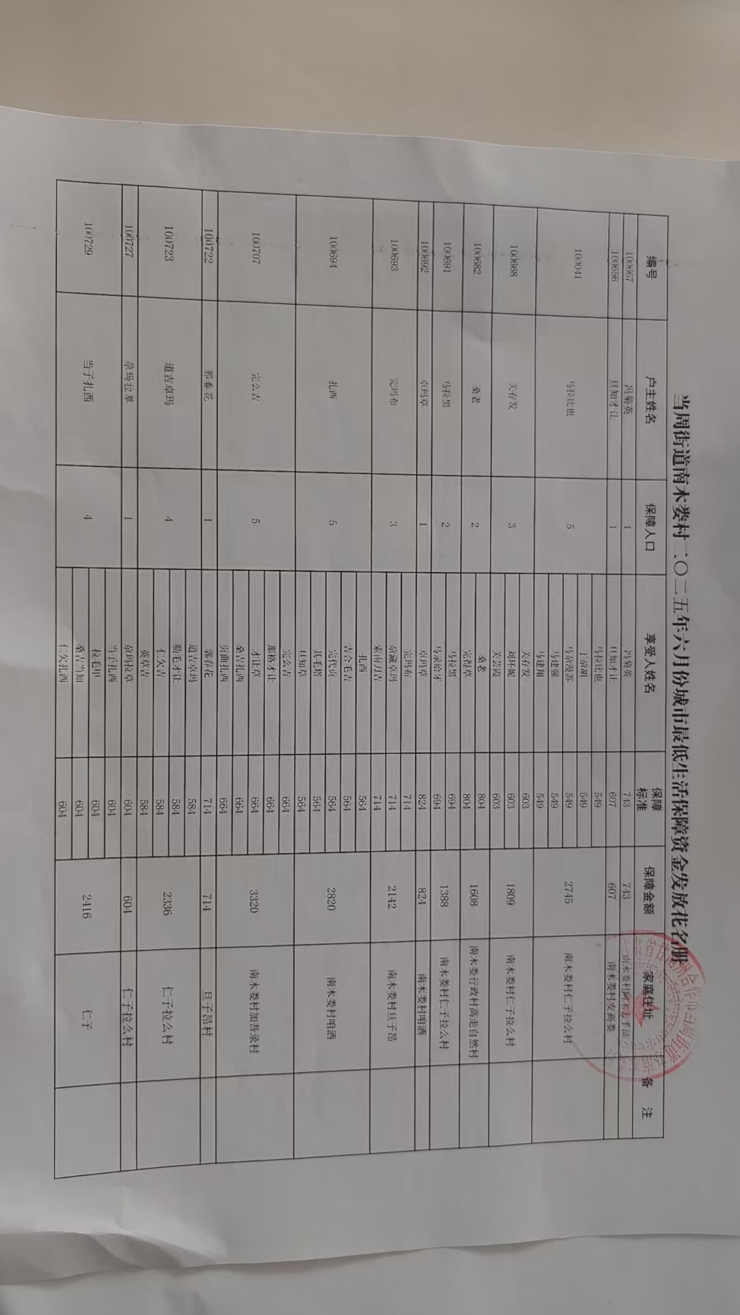 当周街道南木娄村2025年6月份城市最低生活保障资金发放花名册