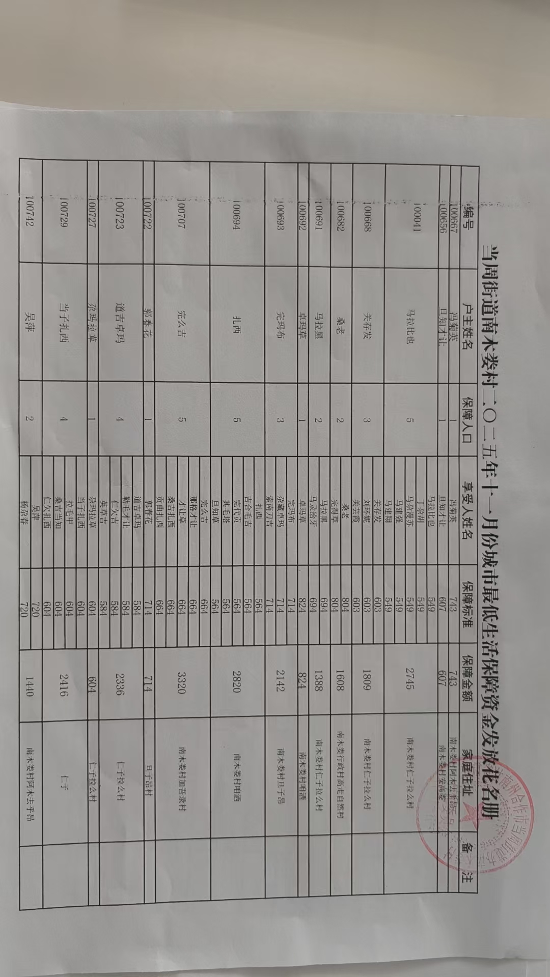 当周街道南木娄村2025年11月份城市最低生活保障资金发放花名册