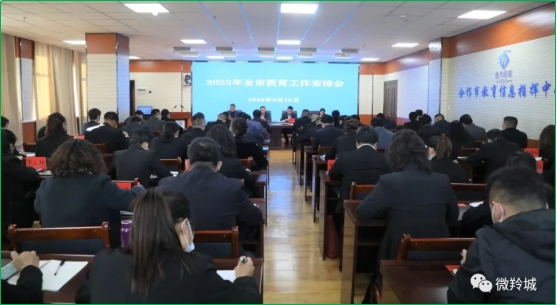 2月15日,合作市召开2023年全市教育工作安排会。市政府副市长杨海林,市教育局党组成员和各科室负责人,市属各级各类学校党组织书记、校(园)长、主任参加会议。