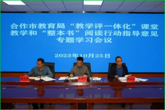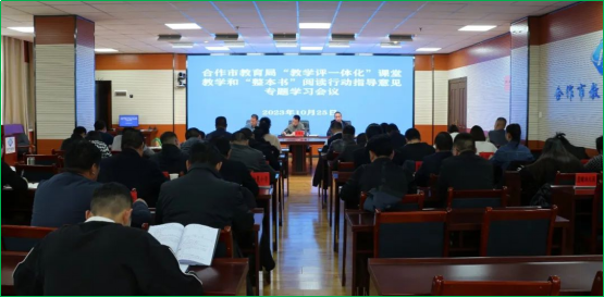 为推动合作市教科研工作持续健康发展,进一步深化新课程改革,提升办学质量和水平,贯彻落实全州教科研工作会议精神,10月25日,市教育局召开“教学评一体化”课堂教学和“整本书”阅读行动指导意见专题学习会议。市教育局党组成员、各科室负责人、教科室全体成员,市属中小学、幼儿园、活动中心党组织书记、校园长、主任参加会议。