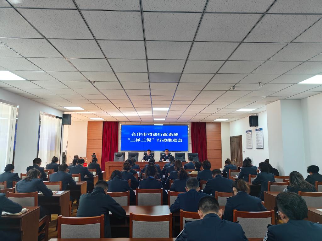 为全面贯彻落实党的二十大精神,深入推动“三抓三促”行动走实走深,动员全系统上下进一步统一思想、凝聚共识。4月19日,合作市司法局组织召开司法行政系统“三抓三促”推进会,局机关、各司法所、援助中心、公证处全体工作人员60余人参加会议。