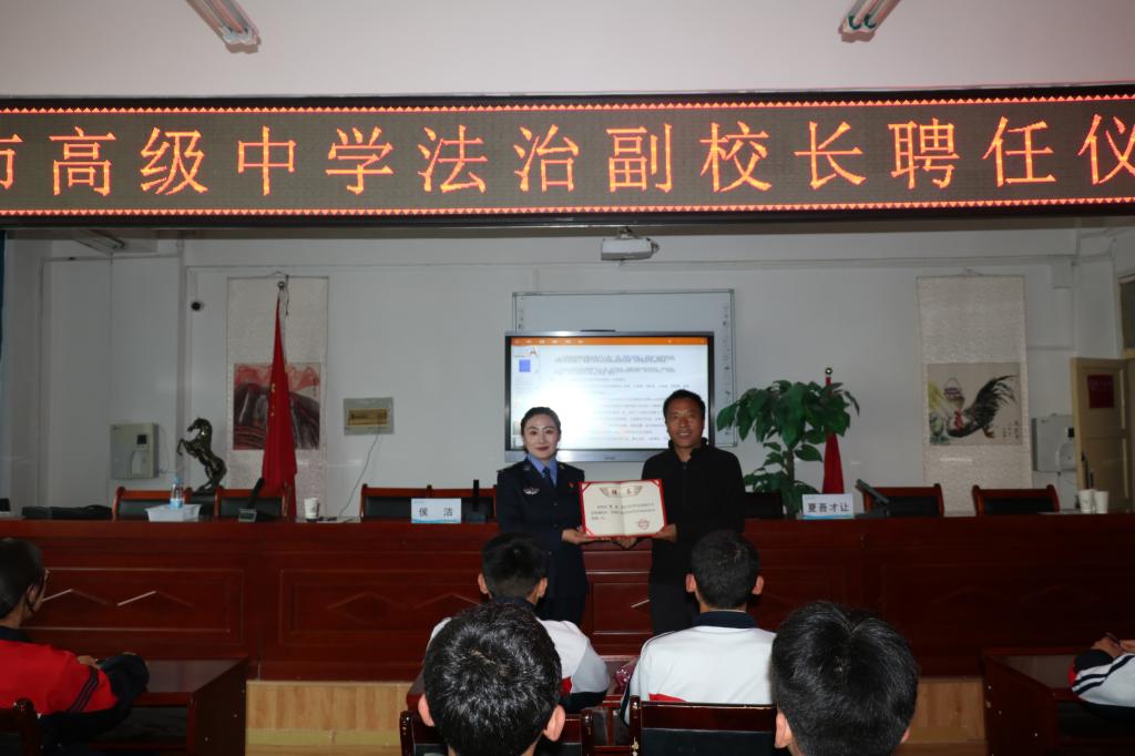 5月16日,合作市高级中学举行法治副校长聘任仪式,合作市司法局干部侯洁被聘任为该校法治副校长,并开展了以“学法守法 健康成长”为主题的送法进校园活动。 在聘任仪式上,副校长才旦同志代表学校颁发了法治副校长聘书,侯洁表示一定会全力以赴做好学校法治宣传教育,深入推进法治进校园工作。