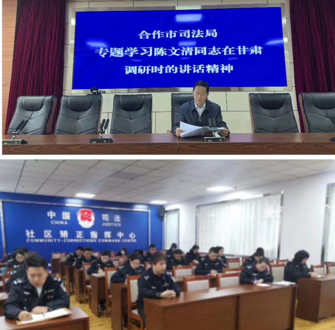 9月4日上午,合作市司法局组织局机关、法律援助中心、公证处全体干部职工专题学习中共中央政治局委员、中央政法委书记陈文清在甘肃调研时的讲话精神,研究贯彻落实工作。 会议指出,陈文清书记的讲话高屋建瓴、提纲挈领,为进一步推进司法行政机关工作指明了方向、锚定了目标,具有很强的指导性和实践性。全体干部要认真学习贯彻陈文清在甘肃调研时的讲话精神,准确把握其精神实质和实践要求,认真贯彻落实,确保调研讲话精神在司法行政工作工作中落实落地。