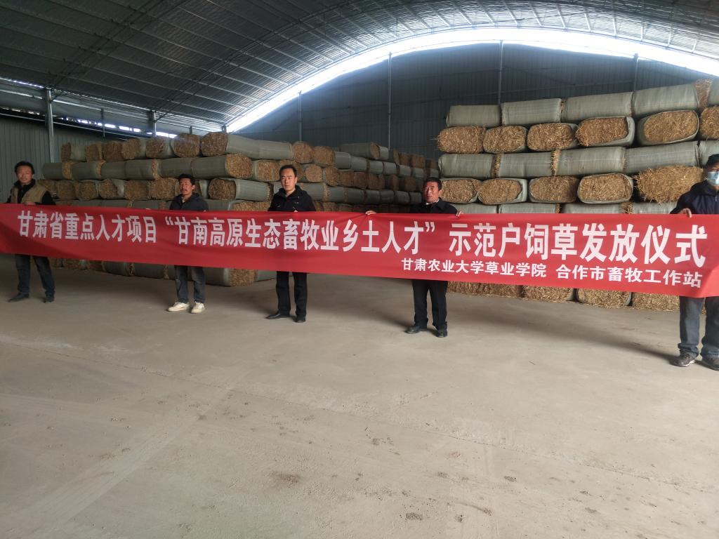 为深入贯彻落实党的二十大精神,全力推进“三抓三促”行动走深走实,进一步做好农牧民群众春季饲草储备工作,真正把抓效能促发展转化为推动我市畜牧业高质量发展的强大动力。4 月25 日,甘肃农业大学草业学院、合作市畜牧工作站联合举行甘肃省重点人才项目“甘南高原生态畜牧业乡土人才”示范户饲草发放仪式。
