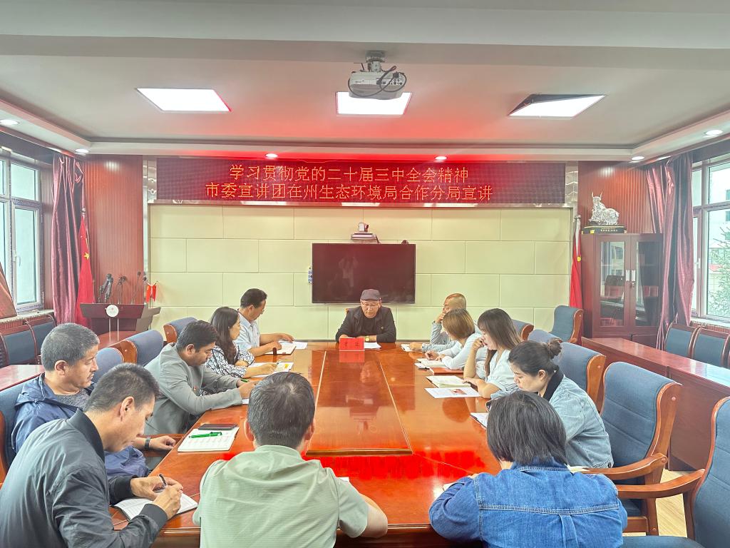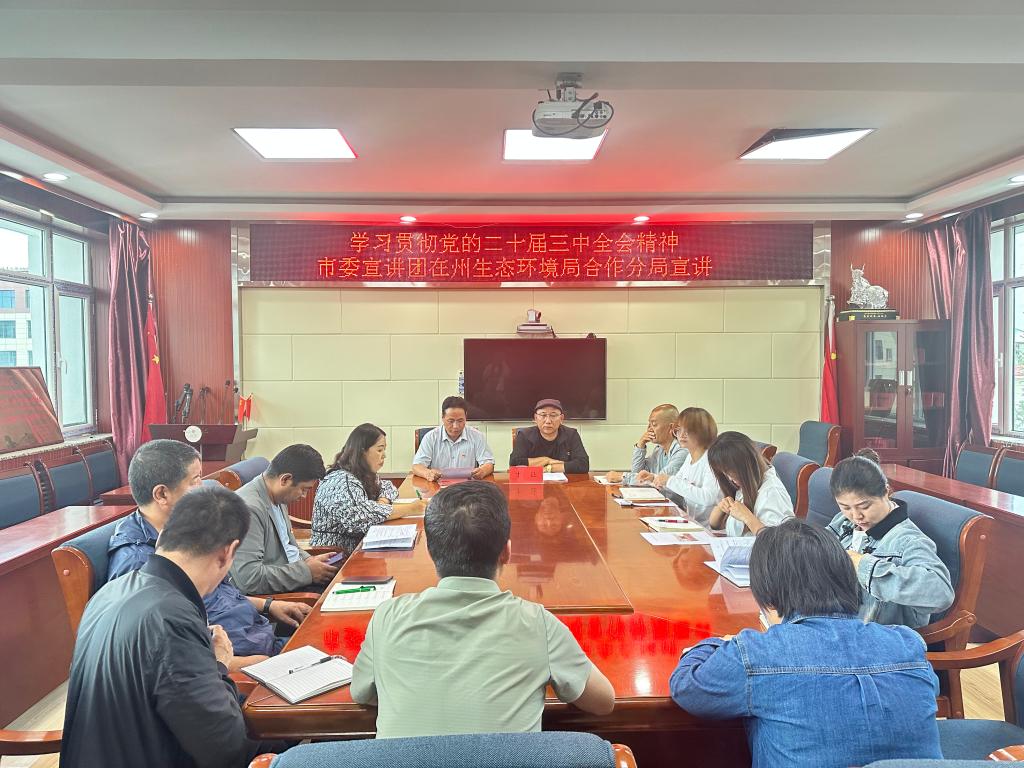 为引导我市生态环境系统干部深入学习贯彻党的二十届三中全会精神,进一步推动羚城生态环境保护工作有力有序开展,9月2日,我局邀请市委党校宣讲员才让围绕党的二十届三中全会精神作宣讲,全体干部参加会议。