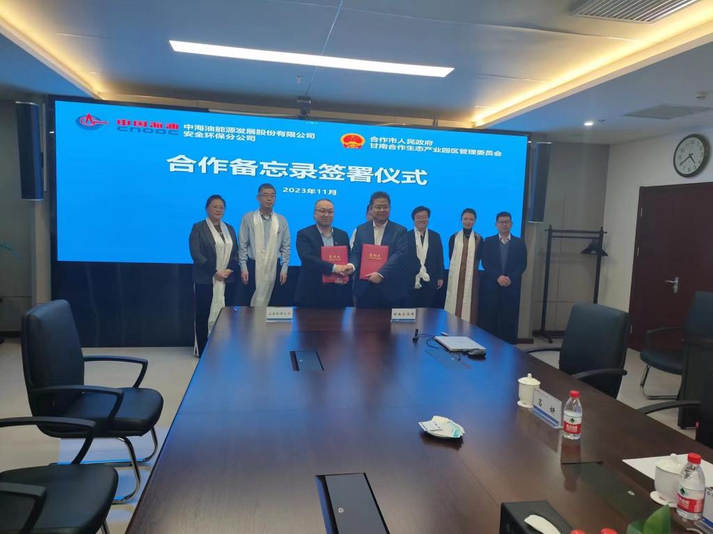 构建零碳绿色产业园区,引领可持续发展新篇章 2023年11月13日至14日,市委常委、副市长高明带领甘南合作生态产业管委会负责人,赴中海油能源发展股份有限公司安全环保分公司和清洁能源分公司考察交流。 11月13日,高明一行到访中海油能源发展股份有限公司安全环保分公司,调研公司的科技研发、生产运行和产品服务及公司下一步发展规划,随后召开座谈会。