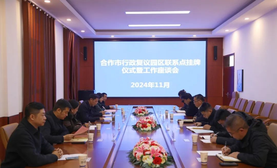 11月28日,合作市举行行政复议园区联系点挂牌仪式暨工作座谈会,市政府副市长、市公安局局长陈建新主持会议并讲话,生态产业园区管委会主任薛禅生参加。