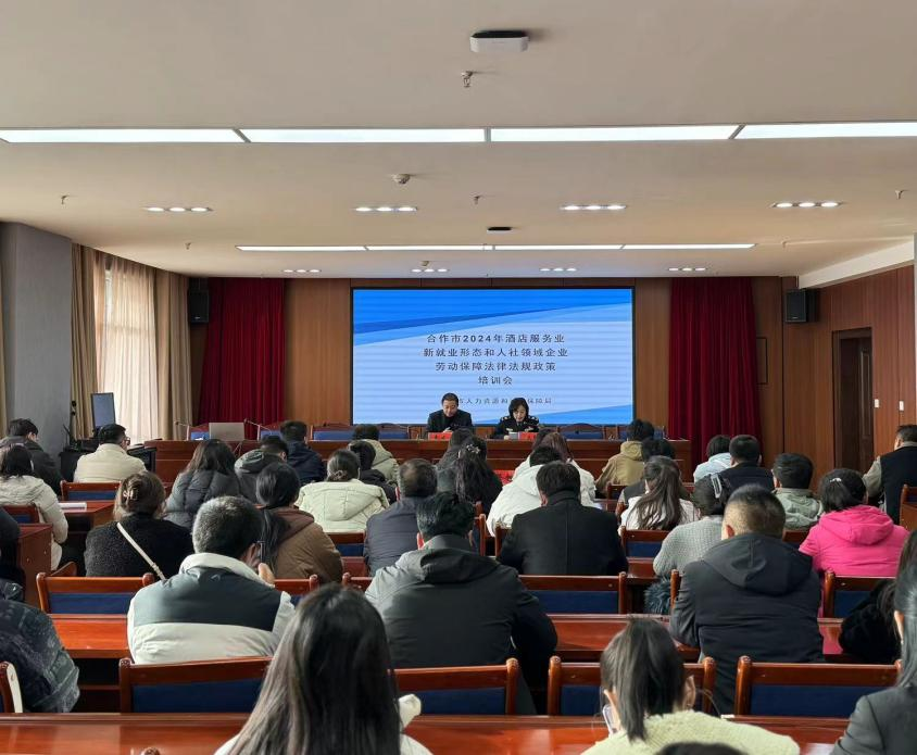 3月8日上午,合作市人社局组织开展了合作市2024年酒店、餐饮、快递、外卖、乡村就业工厂(帮扶车间)、劳务派遣单位、民办职业培训机构、人力资源服务机构等行业劳动保障法律法规培训会。局相关科室工作人员及各企业负责人共计70余人参加此次培训会。