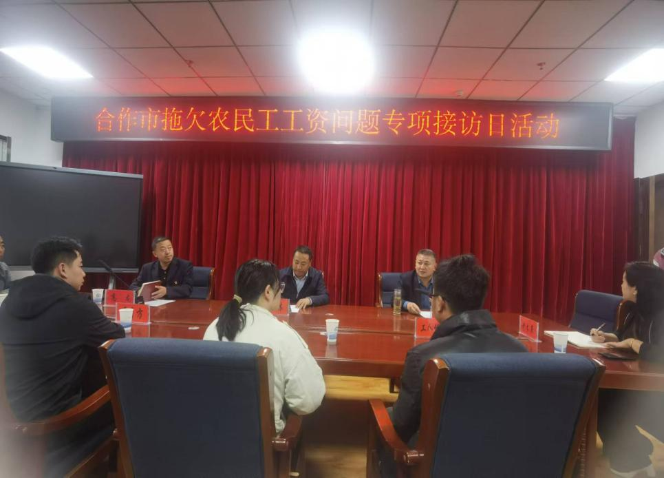 为全力推动专项整治工作走深走实,切实维护农民工劳动报酬权益,根据《关于开展全州拖欠农民工工资问题专项接访活动的通知》要求,9月19日,合作市开展拖欠农民工工资问题专项接访活动,合作市委常委、市政府副市长杨海林出席接访活动,市人社局主要负责人、那吾镇分管负责人、有关投诉人和施工单位负责人等参加。