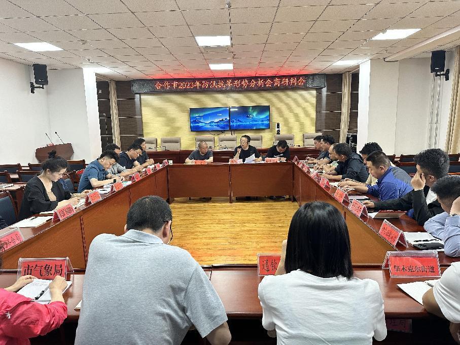 为深入贯彻落实习近平总书记对防汛救灾工作作出的重要指示精神和近期国家、省、州、市防汛救灾工作电视电话会议及有关文件精神,7月10日,合作市防汛抗旱指挥部办公室组织各乡镇、街道,市防汛抗旱指挥部各有关成员单位召开全市2023年防汛抗旱形势分析会商研判会议。 会议学习了习近平总书记在四川考察和近期重庆等地遭遇强降雨造成重大人员伤亡和财产损失作出的重要指示精神,传达《甘南州委办公室、甘南州人民政府办公室关于认真贯彻落实习近平总书记重要指示精神扎实做好全州防汛救灾工作的通知》、《甘南州防汛抗旱指挥部关于切实做好主汛期防汛抗旱工作的通知》文件要求,解读《合作市强降雨防范指引》、《合作市应对灾害性天气实施的“四停”工作机制》,市气象局从入汛以来天气气候概况、近期天气预报、汛期气候预测进行了分析研判,同时提出应对防范建议。各相关部门针对气候预测,结合各自工作职责提出防范应对措施,市防汛抗旱指挥部办公室相关负责人提出几点防范要求,并就防汛工作进行了再安排、再部署、再强调。