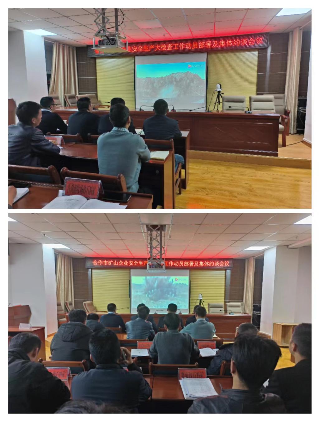 会上,全体参会人员观看了《露天矿山坍塌事故》等安全警示片,传达学习省州市安全生产相关会议精神及《合作煤矿山安全生产大检查工作方案》并做了具体安排部署,明确行业监管、属地管理和企业主体责任。要求各矿山企业扎实做好安全生产自查自纠问题隐患排查整治和规范复工复产验收程序和标准,提高验收效率。