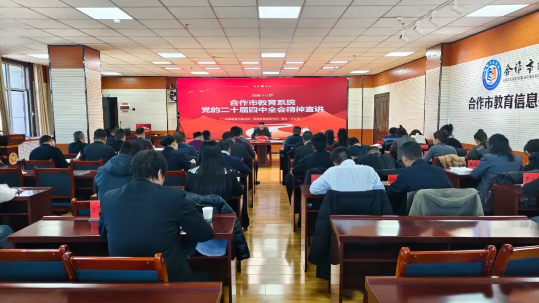 11月27日,合作市教育系统学习贯彻党的二十届四中全会精神宣讲会召开。市教育局党组成员及各科室负责人,市属各学校党组织书记、校(园)长,活动中心主任参加会议。 市教育局负责人围绕“深刻领会党的二十届四中全会精神的核心要义”、“‘十四五’时期教育发展成效”、“全面把握好‘十五五’期间教育改革发展目标任务”、“推动党的二十届四中全会精神在教育系统落地生根、开花结果”四个方面开展宣讲。阐述了党的二十届四中全会精神的核心要义及全会通过的《中共中央关于制定国民经济和社会发展第十五个五年规划的建议》相关内容,从国家、省、州、市不同层面回顾了“十四五”期间教育工作发展成效,明确了“十五五”期间合作市教育发展目标任务。 会议指出,“十四五”时期,我国经济实力、科技实力、综合国力跃上新台阶,中国式现代化迈出新的坚实步伐,第二个百年奋斗目标新征程实现良好开局。这些重大成就的取得,根本在于以习近平同志为核心的党中央领航掌舵,在于习近平新时代中国特色社会主义思想科学指引。“十五五”时期,是基本实现社会主义现代化夯实基础、全面发力的关键时期,全市教育系统要把思想和行动统一到党中央关于形势的基本判断和战略部署上来,深刻领悟“两个确立”的决定性意义,增强“四个意识”、坚定“四个自信”、做到“两个维护”,保持战略定力,增强必胜信心,奋力开创中国式现代化建设新局面。 会议强调,要深入理解党的二十届四中全会精神对教育工作的战略指引,把握关于发展新质生产力、扎实推进高质量发展的重要论述,把握关于全面深化改革开放的重要部署,把握关于推进文化自信自强、建设中华民族现代文明的重要要求,把握关于增进民生福祉、提高人民生活品质的重要安排,把握关于推进国家治理体系和治理能力现代化的战略任务。要贯彻落实党的二十届四中全会精神对教育工作的实践要求,迅速掀起学习宣传热潮,依托“两团一队”,在系统内开展党的二十届四中全会精神全覆盖宣讲工作,让全会精神进校园、进课堂、进师生头脑。要对标对表谋划发展思路,聚焦重点任务攻坚克难,强化担当确保落实见效,把全会精神转化为推动工作的强大动力,锐意进取、真抓实干,谱写合作市教育高质量发展新篇章。 会前,召开了合作市教育局党组2025年理论学习中心组第十一次集中学习暨党组扩大会议,学习了《习近平谈治国理政》第五卷部分章节,传达学习了省州市有关文件内容。