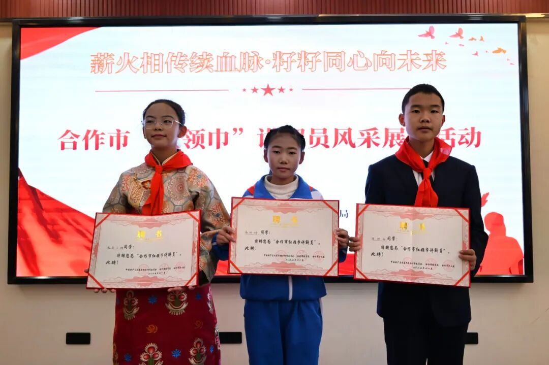 为深入学习贯彻党的二十届四中全会精神与习近平总书记关于少年儿童和少先队工作的重要论述,全面落实《中共中央关于全面加强新时代少先队工作的意见》要求,进一步强化少先队组织在教育引领青少年中的核心作用,凸显其独特的组织育人与实践育人优势,教育引导全市广大少先队员深入学习党史、新中国史、改革开放史、社会主义发展史以及新时代中国特色社会主义建设的伟大实践,不断增强对党、祖国和中华民族的认同与热爱。11月26日,团市委、市教育局、市少工委联合开展“薪火相传续血脉·籽籽同心向未来”合作市红领巾讲解员风采展示活动。