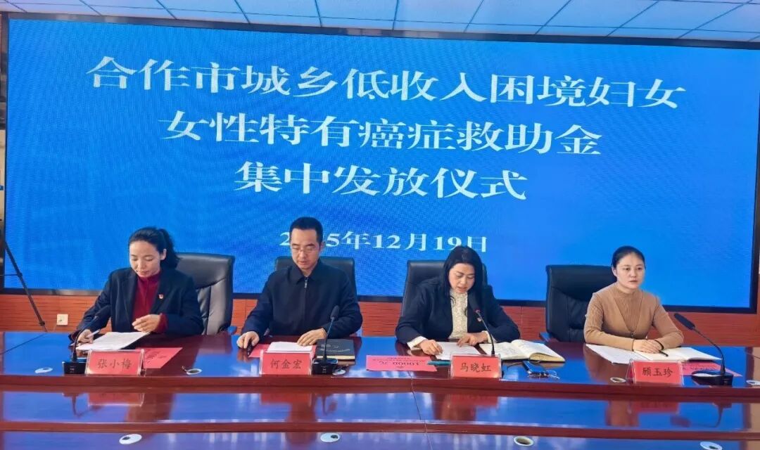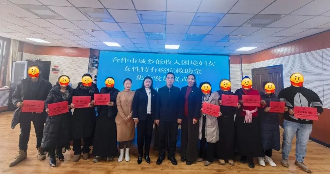 妇女是家庭的“主心骨”,更是推动社会发展的“半边天”,女性健康对下一代的孕育、幸福家庭和稳定社会的形成至关重要,然而,乳腺癌、宫颈癌、卵巢癌等“女性特有癌症”的侵袭,不仅严重威胁着广大妇女的身心健康,也给许多家庭带来了沉重的经济和生活负担。也是造成很多患病妇女家庭因病返贫、因病致贫的重要原因。 为深入贯彻落实习近平总书记关于妇女儿童工作的重要论述,贯彻落实国家卫生健康政策,保障城乡低收入困境妇女生命健康权益,提高妇女患者的生存质量,切实减轻患病妇女家庭经济负担,近日,合作市妇联精心筹划,举行了合作市城乡低收入困境妇女 “女性特有癌症” 救助金发放仪式,为9名城乡低收入困境“女性特有癌症”患病妇女每人发放了1万元救助金。市委副书记何金宏出席仪式并致辞,救助对象及其乡镇、街道妇联主席、妇干、妇女代表、受助对象家属代表等40余人参加了仪式,发放仪式由市妇联党支部书记、主席马晓虹主持。