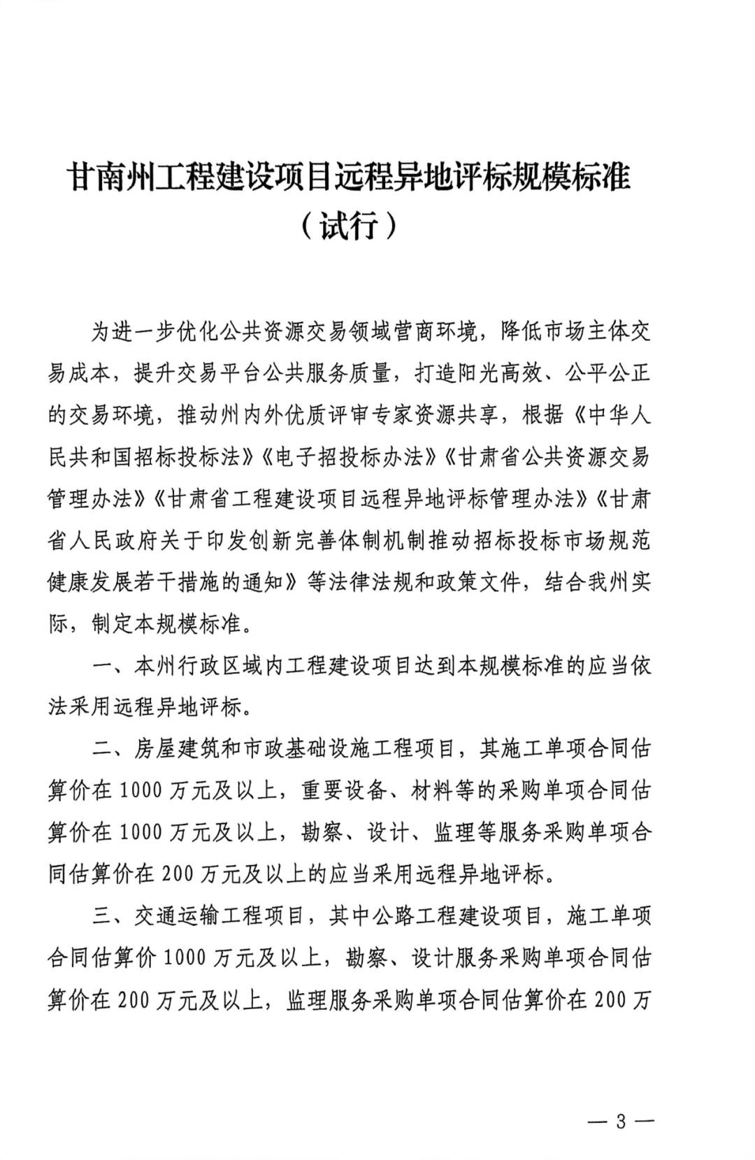 甘南州发展和改革委员会等部门关于印发《甘南州工程建设项目远程异地评标规模标准(试行)》的通知