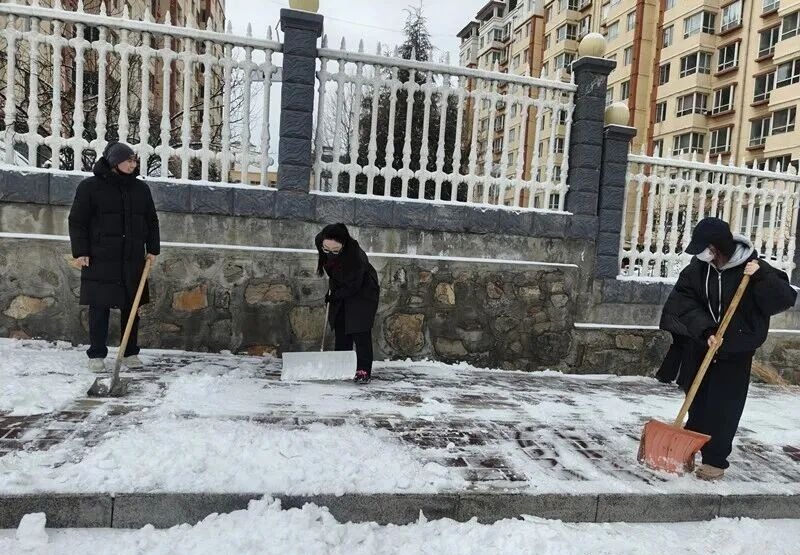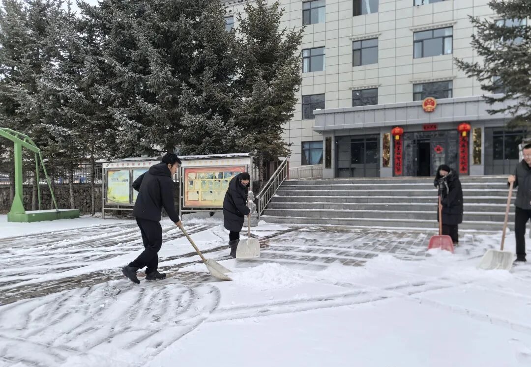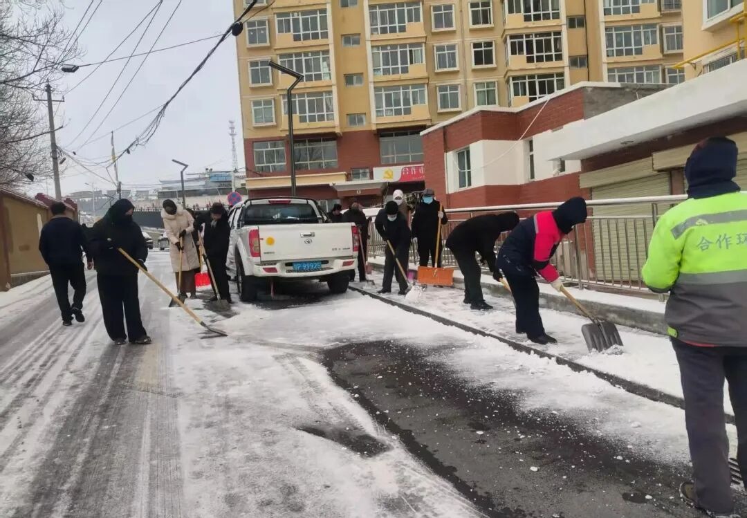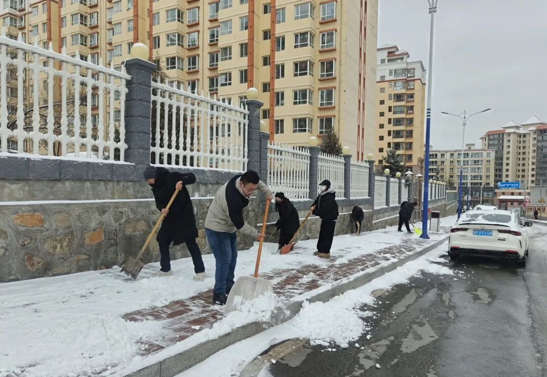 天寒地冻,挡不住同心协力的热忱;风雪交加,磨不掉为民服务的初心。广大干部群众冲锋在前,手持铁锹、扫帚、推雪板,分工明确、配合默契。大家奋力铲破冰层,细致归拢积雪,重点对城区主干道、小区出入口、坡道台阶、公交站点周边逐一清理,不留一处死角、不存一处隐患。
