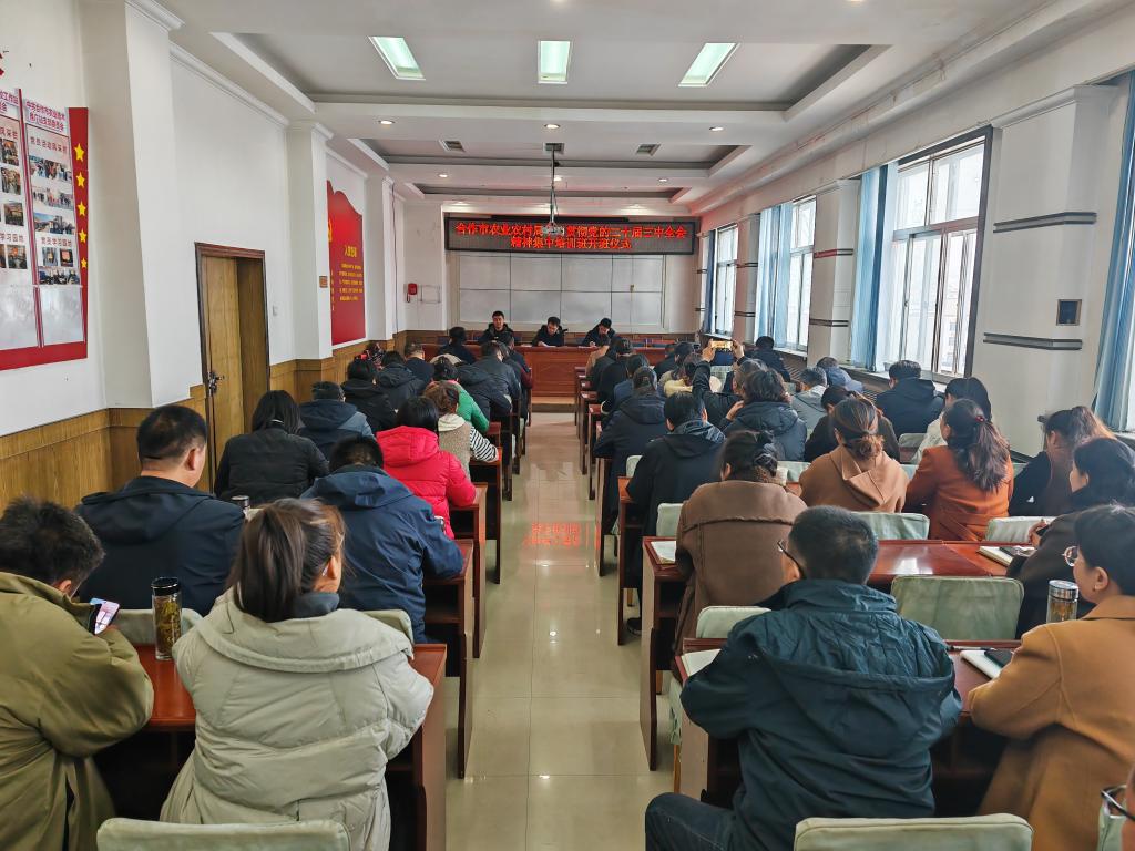 为深入学习贯彻党的二十届三中全会精神,进一步拓宽“三农”干部工作思路、激发创新思维,全面提高政治能力、思维能力和实践能力,合作市农业农村局按照市委组织部、市直机关工委要求组织全体党员 此次专题培训学习为期五天,共安排开班仪式、党组书记讲专题党课、专题讲座、学习研讨四个环节,以网络课堂与线下学习相结合的方式对党的二十届三中全会精神、习近平总书记视察甘肃重要讲话精神以及创新推进铸牢中华民族共同体意识等内容进行系统性学习。 开班仪式上,党组书记对全体党员干部作了训前集中谈话,结合党的二十届三中全会精神,以“遵循进一步全面深化改革‘六个坚持’的原则”为主题,讲授专题党课。 会议强调,全体党员干部要深刻领悟党的二十届三中全会和习近平总书记视察甘肃重要讲话重要指示精神,不折不扣把习近平总书记重要讲话 责任编辑:王晓宏 本期复审:卡召加 本期撰稿:马继文